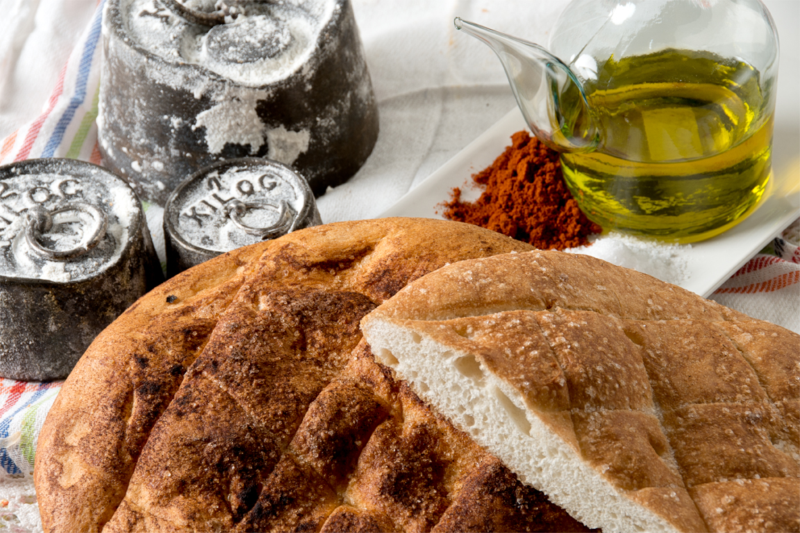 Masa de trigo rellena de sobrasada casera. Ideal como almuerzo.